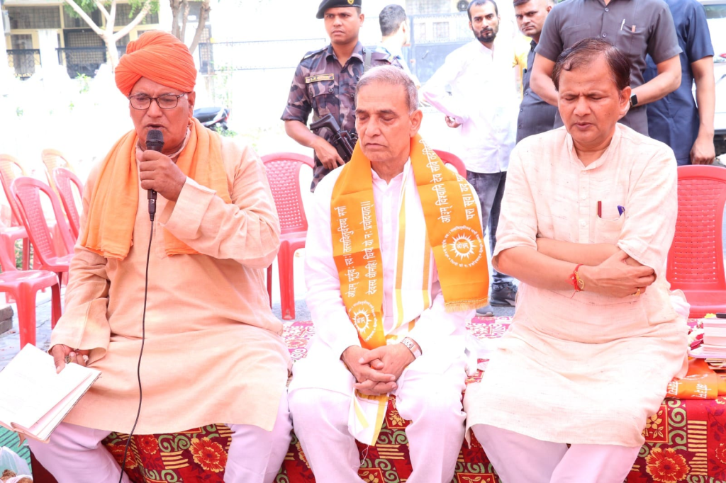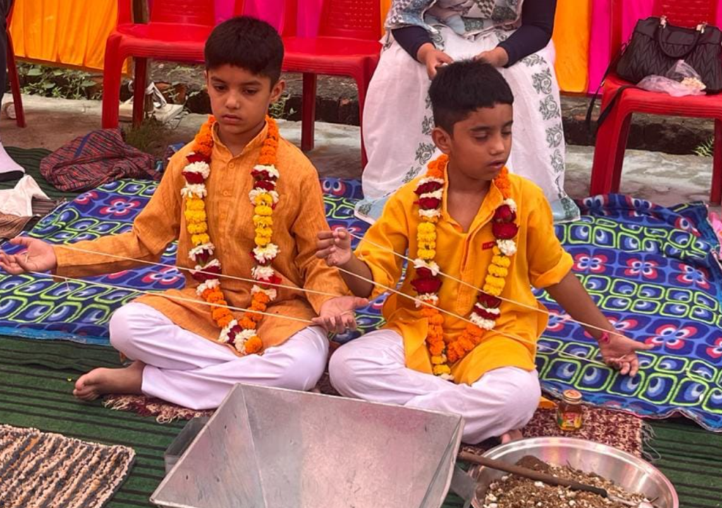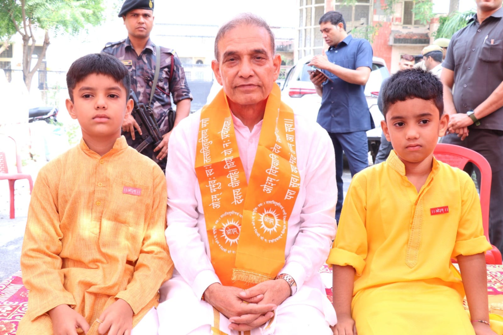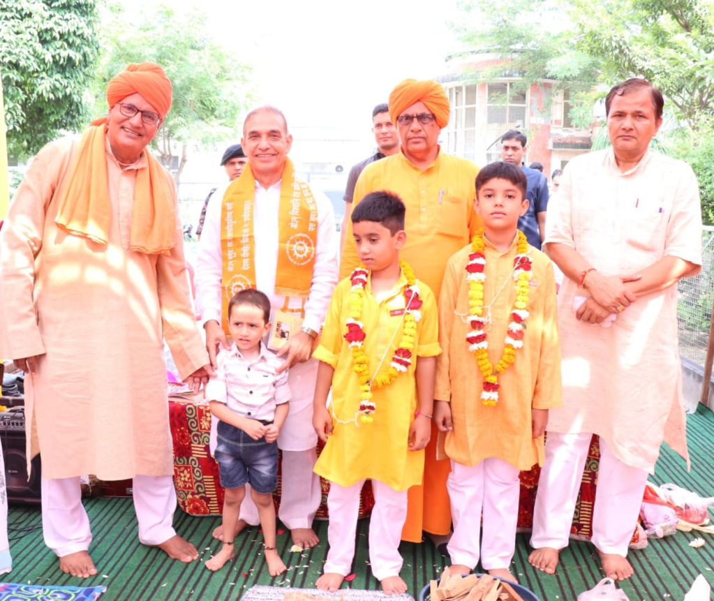 कराकर समाज और राष्ट्र निर्माण में श्लाघनीय कार्य किया है। आज उपनयन संस्कार को तो लाखों में कोई कोई व्यक्ति करा रहा है जबकि हम सभी को और विशिष्टतया आर्य समाज को इस और अधिक ध्यान देने की आवश्यकता है। पोत्रों को अपने हाथ से ‘ओम् यज्ञोपवीतम् ……‘ बोलकर यज्ञोपवीत पहनाकर आशीर्वाद दिया और ओ३म् के प्रतीकात्मक चिह्न (बैज) लगाए।